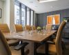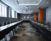 - TV screen, power strips, technical support, notepads, pens, glassware, water carafes, and in-space catering equipment.