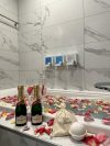 - Un accueil romantique incluant des pétales de rose et deux bouteilles (200 ml) de vin mousseux